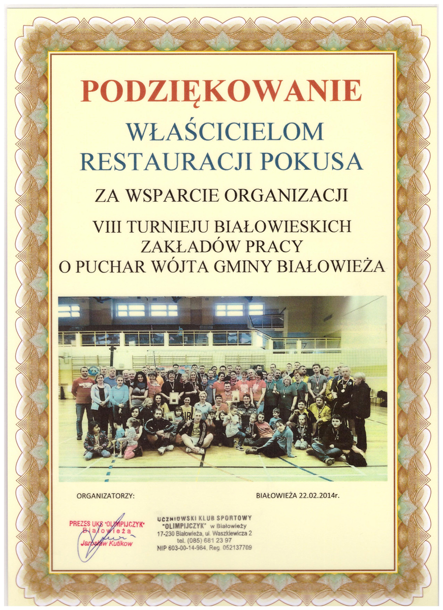 Obcowanie z przyrodą i możliwość obserwowania pierwotnego lasu, to atrakcje pozostawiające niezatarte wrażenia. Odpoczywając w sercu Puszczy Białowieskiej zapraszamy Państwa do skorzystania z oferty Restauracji Pokusa. Oferowane przez nas dania przygotowywane są ze świeżych i ekologicznych produktów. Zapewniamy doskonałą obsługę kelnerską oraz komfortowe warunki do delektowania się „smakami Puszczy Białowieskiej”. Dodatkową zaletą naszej Restauracji jest konkurencyjność cenowa w stosunku do innych tego typu miejsc w Białowieży. Restauracja Pokusa dysponuje 52 miejscami, zaś nasza elastyczność i profesjonalizm sprawi, iż będziecie Państwo mogli poświęcić swój czas na odpoczynek.